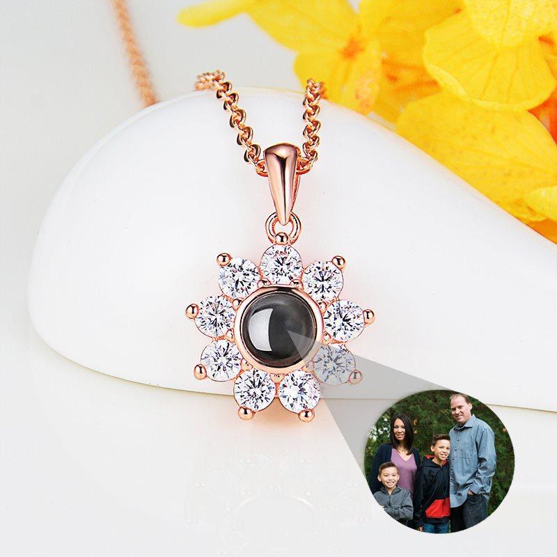 Loveyoufancy Sunflower Projection Necklace in 925 Sterling Silver
