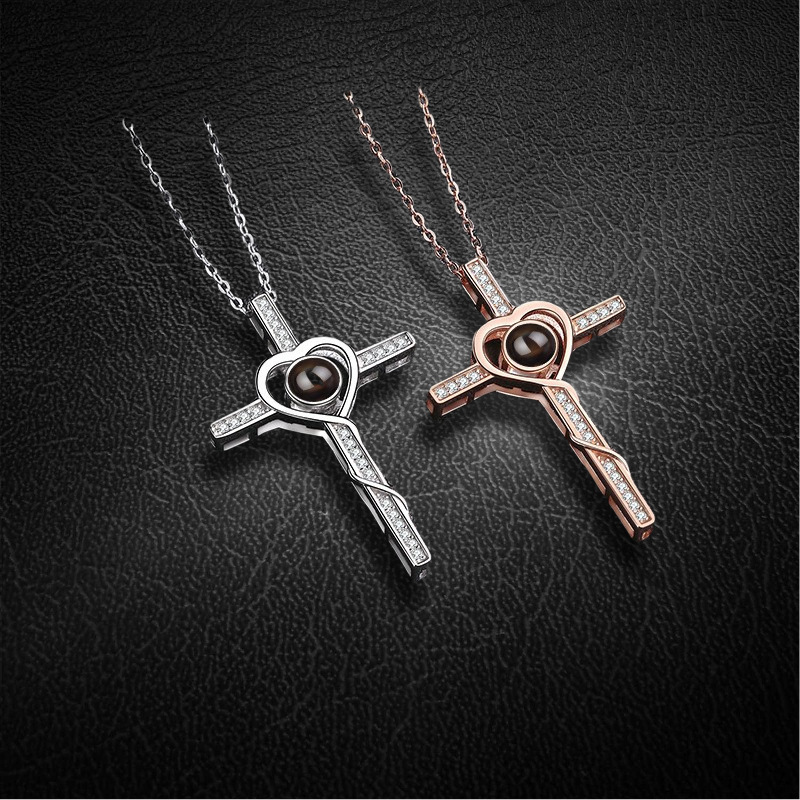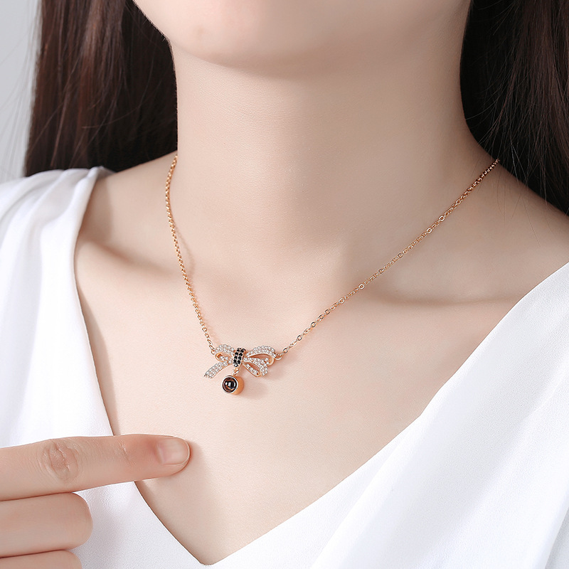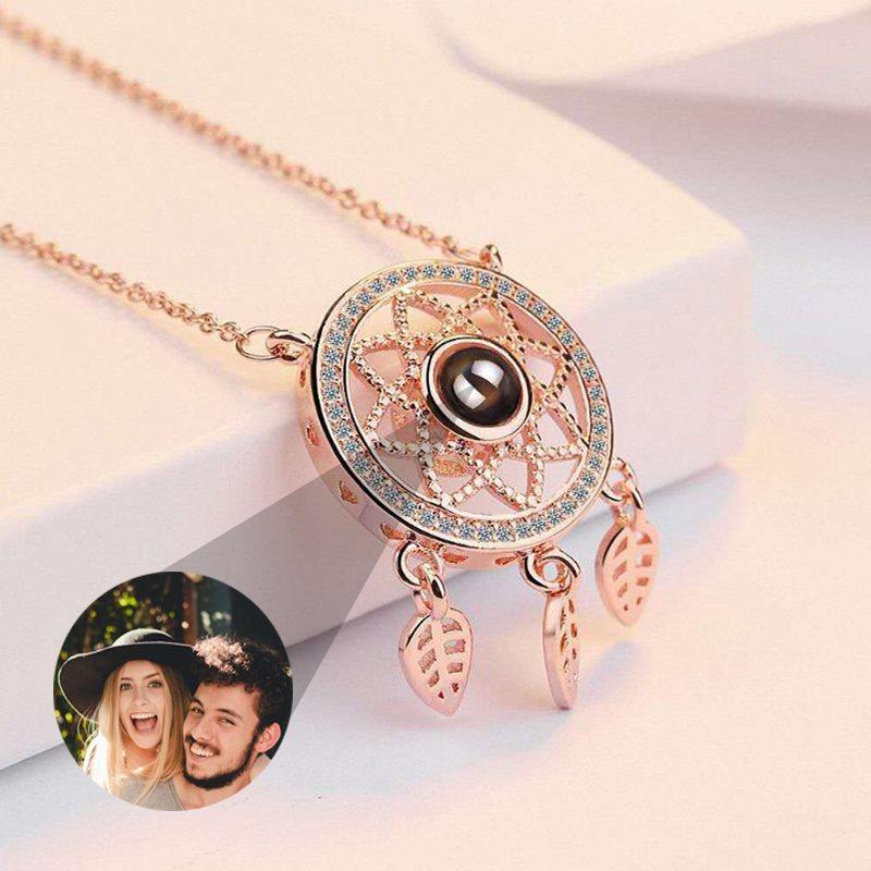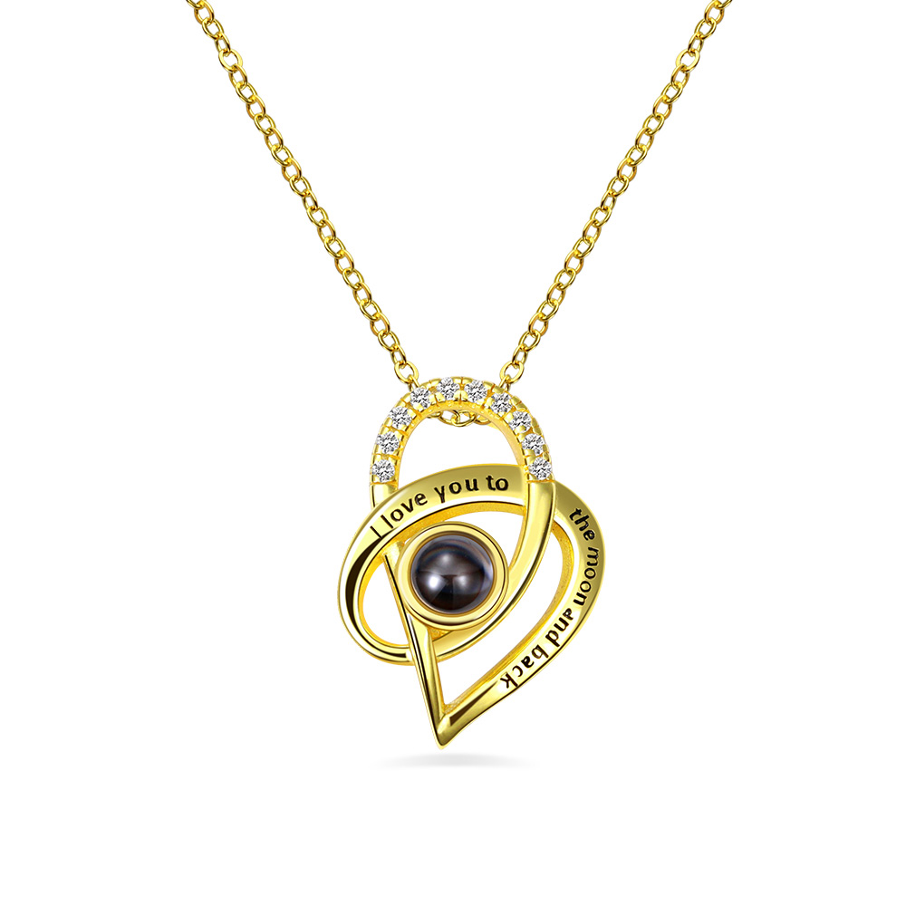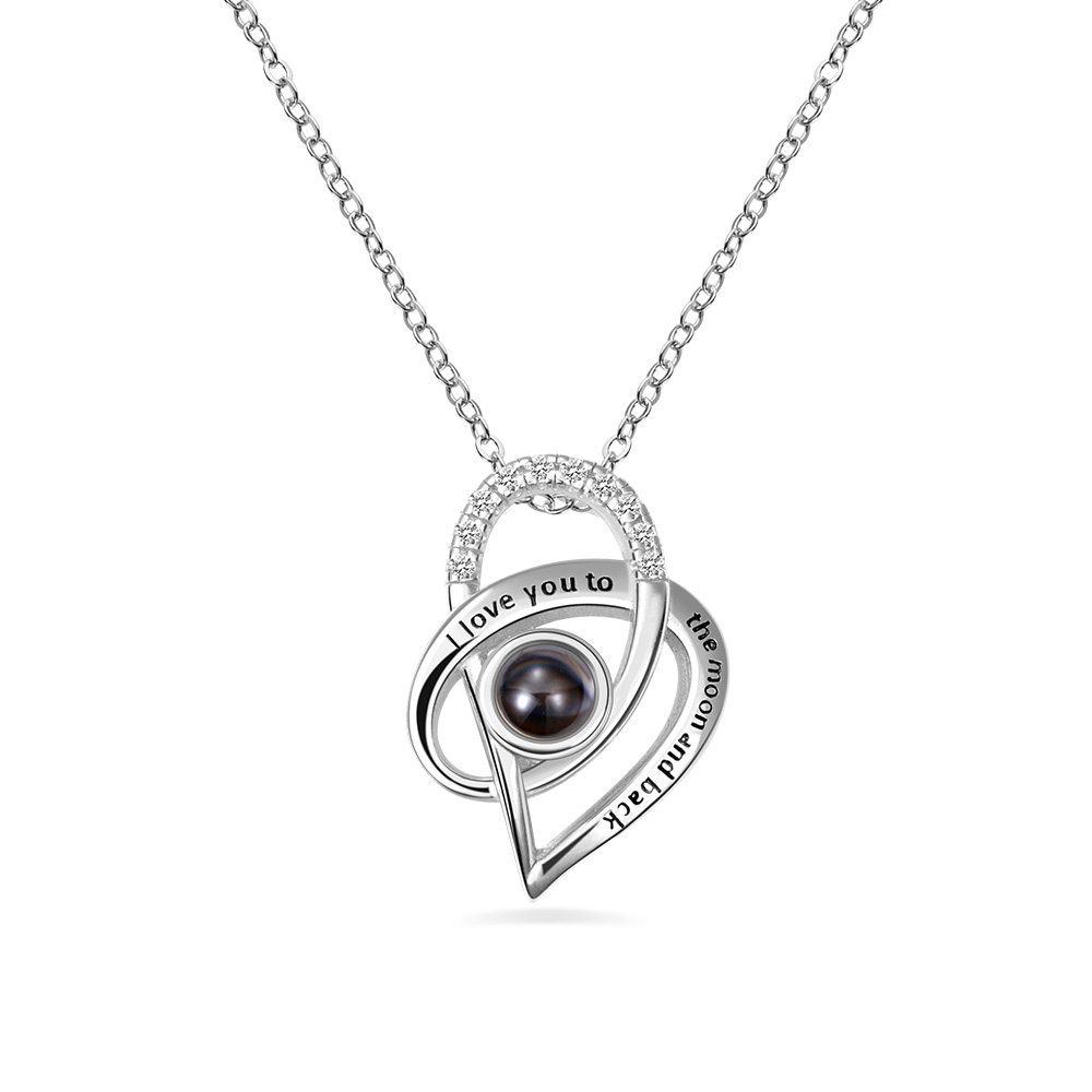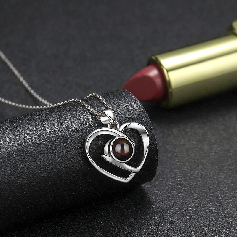 Custom Photo Projection Necklace with I Love You in 100 Languages