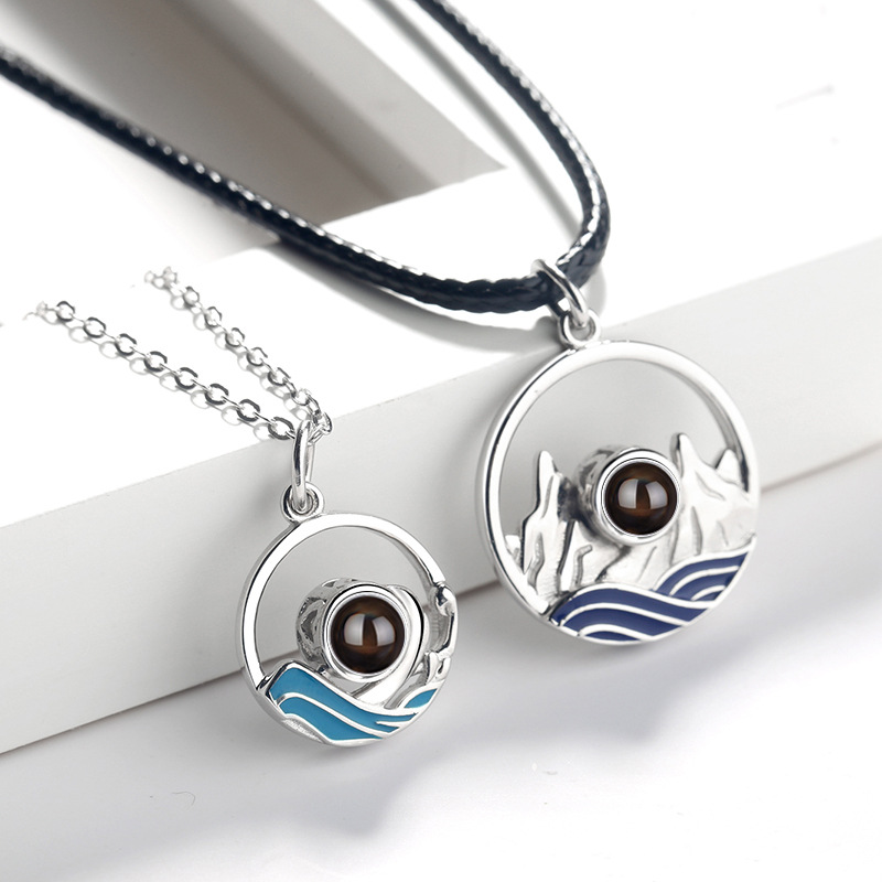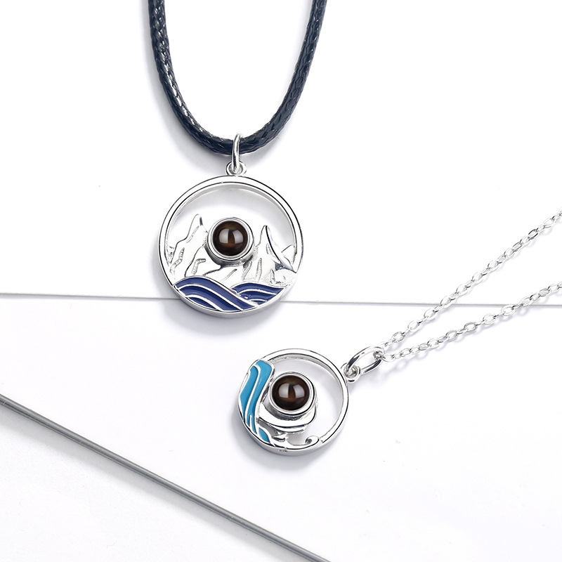 925 Sterling Silver Sea and Mountain Vow Projection Necklace Set