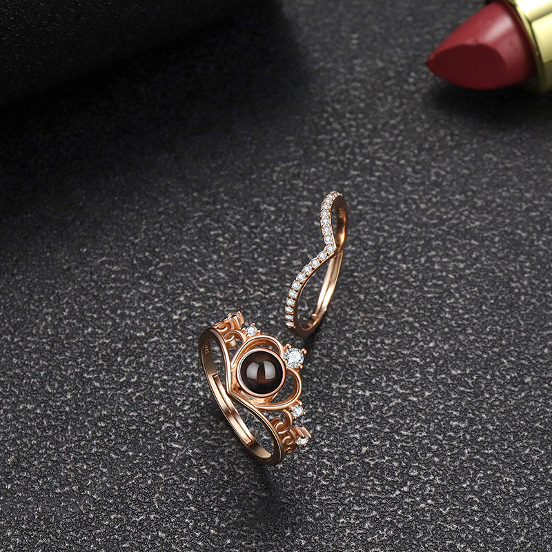 Every girl has a dream of a princess. A diamond personalized crown Etsy promise ring is just like providing a crown to a girl to become a princess. Polished and sparkly with cubic zirconia, this classic wedding ring set has extraordinary taste. Using Micro-engraving technology to say "I love you" or "Happy Birthday" in 100 different languages, plus the romance of love to add a pleasant surprise, you can catch her heart and never be apart.