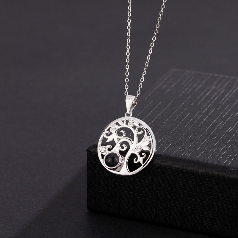 Personalized S925 Love Tree Shadow Pendant Necklace with Custom Photo